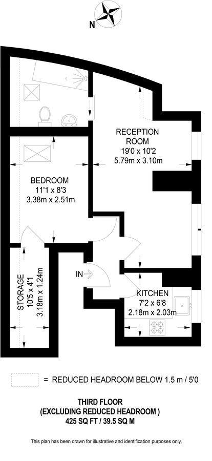 1 bed, 1 bath, 1 reception, 425 sq. ft;