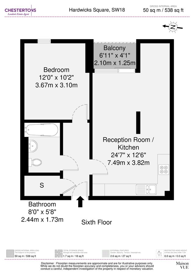 1 bed, 1 bath, 1 reception, EPC Rating: B