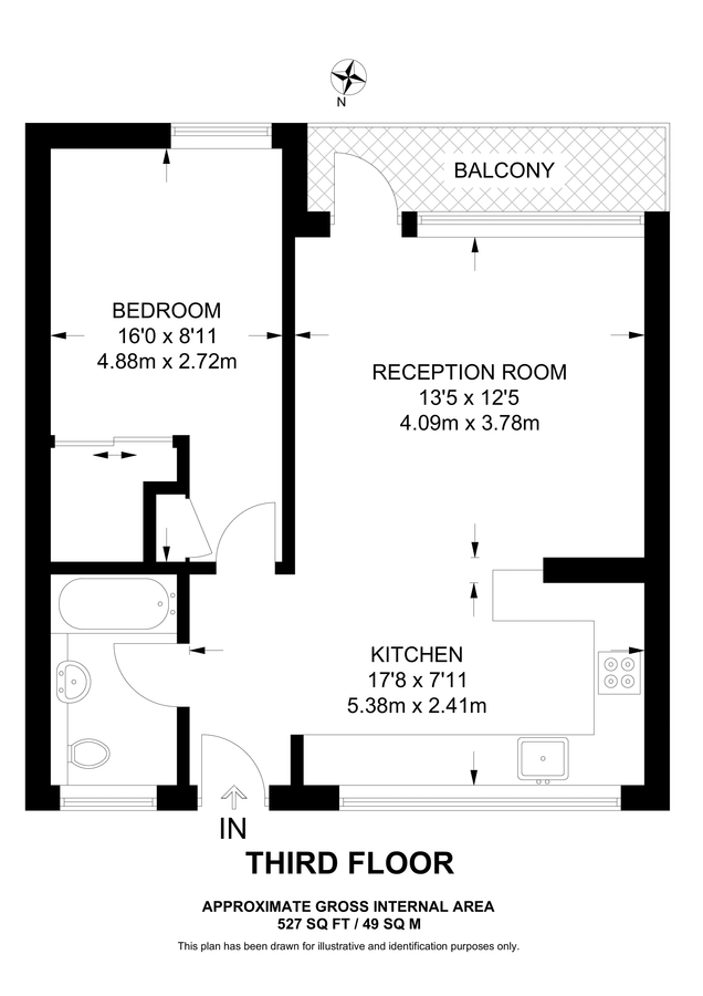 Эта современная квартира с одной спальней на третьем этаже отделана по высоким стандартам. Она включает в себя большую кухню открытой планировки и гостиную с выходом на частный балкон, а также просторную спальню.