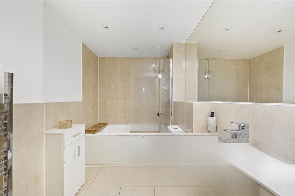 Внутри квартира светлая и просторная с большой открытой зоной гостиной/столовой/кухни, которая выходит на балкон, двухместной спальней и семейной ванной комнатой. Квартира предлагается на рынке без цепочки, что делает покупку ещё более привлекательной.