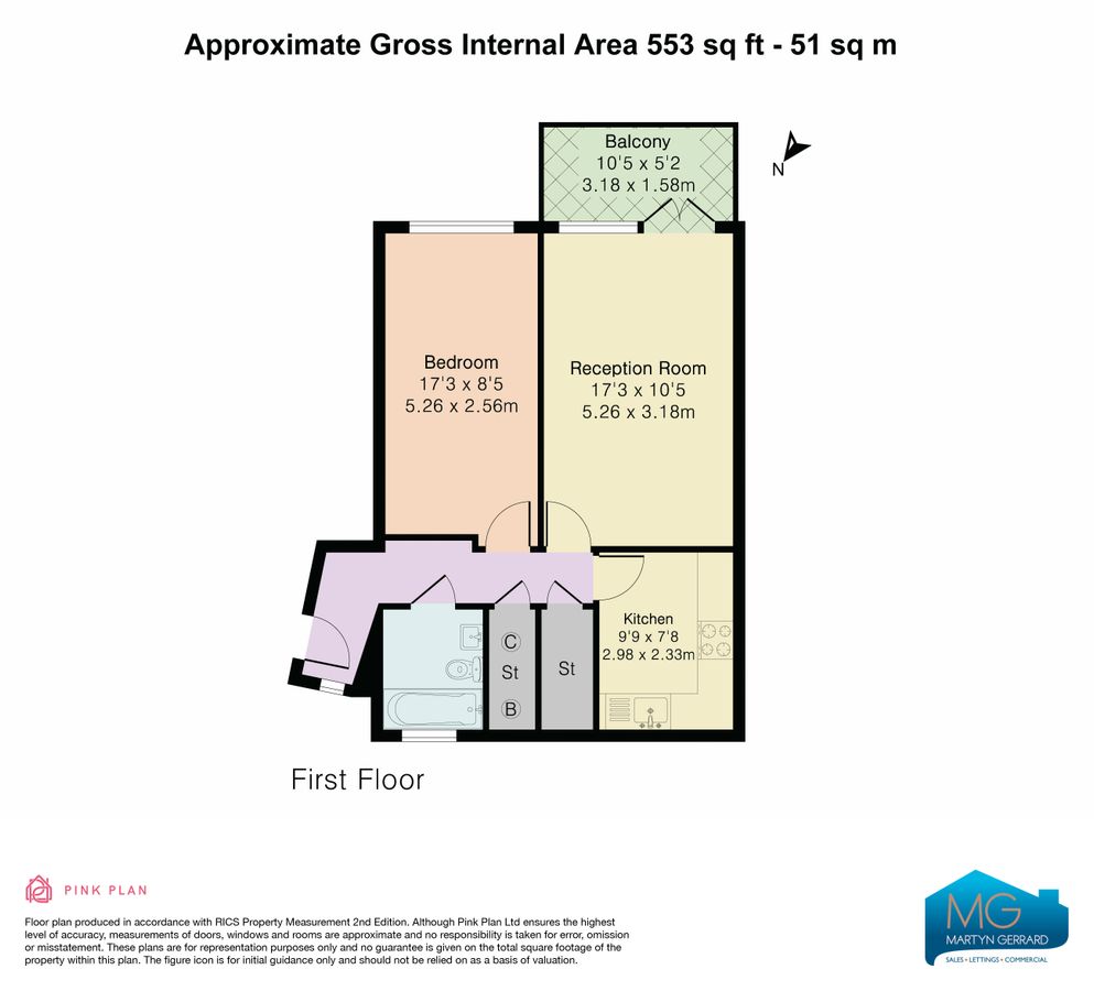 1 bed, 1 bath, 1 reception, EPC Rating: C