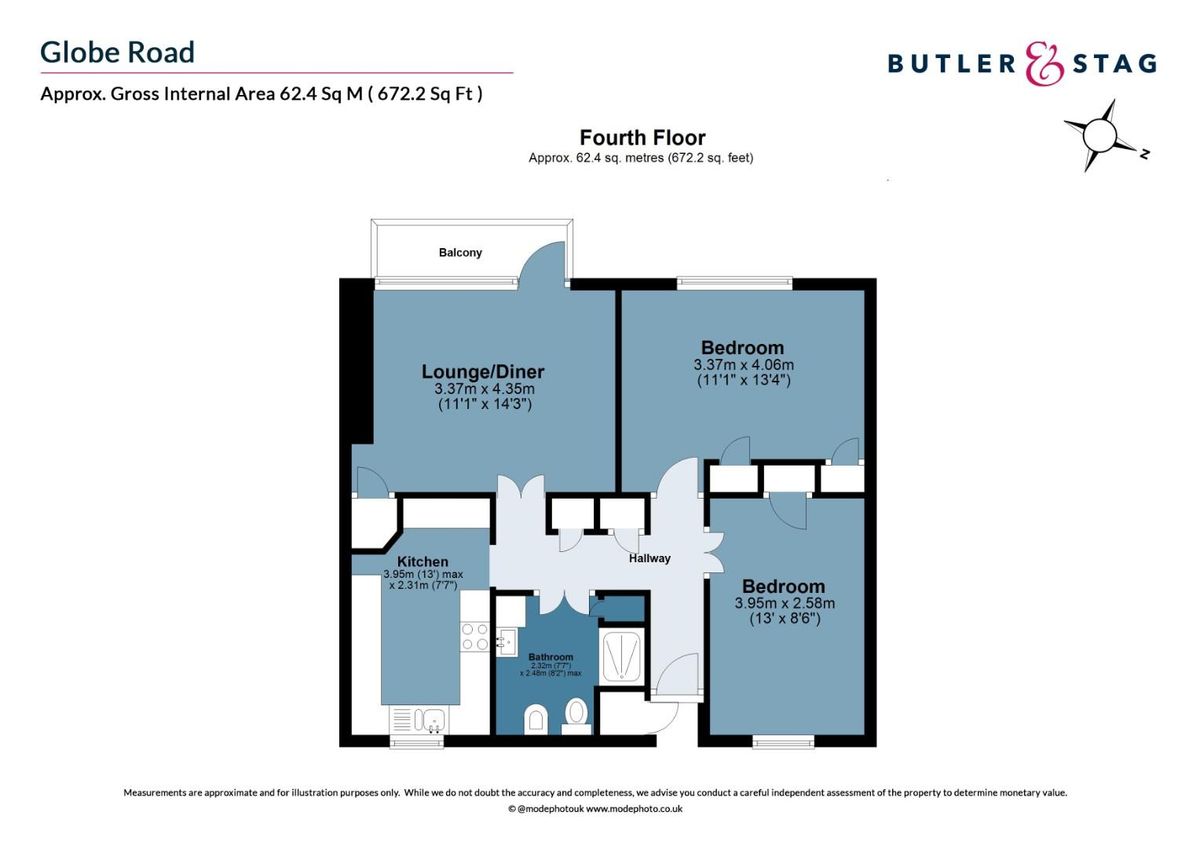 2 beds, 1 bath, 1 reception, 722 sq. ft;