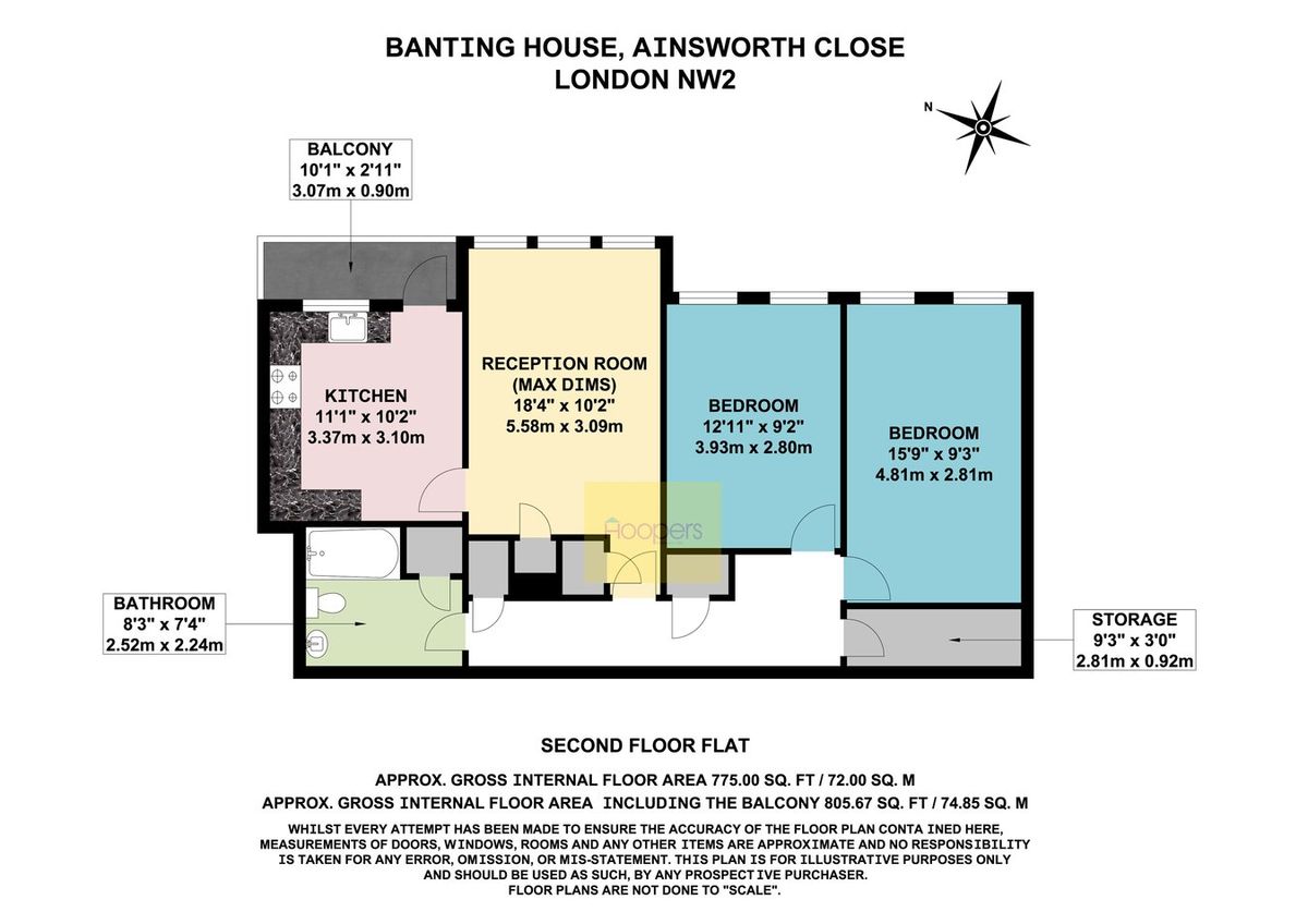 Кухня: 11’1 x 10’2” (3.37м x 3.10м). Окно с двойным остеклением. Мойка с одним отсеком и смесителем. Встроенные шкафы на стенах и у основания. Газовая плита с духовкой ниже и вытяжка над плитой. Подводка для стиральной машины. Настенную бойлер. Плиточный пол и частично облицованные стены. Дверь с двойным остеклением на балкон.