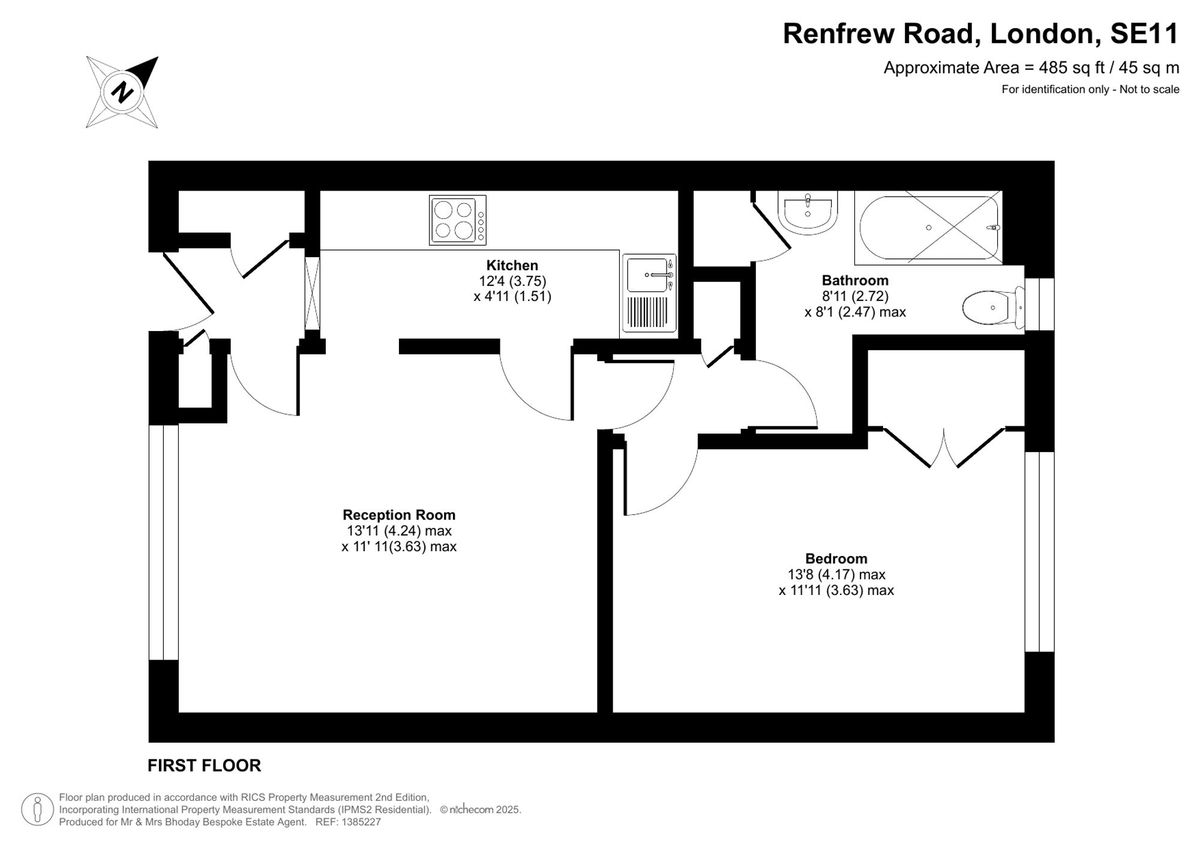1 bed, 1 bath, 1 reception, 485 sq. ft, EPC Rating: C