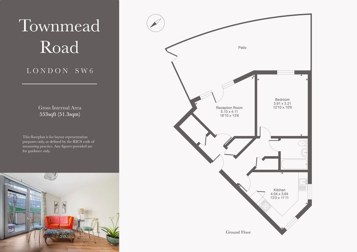 Местоположение тоже заслуживает внимания… Townmead Road лежит сразу после моста Wandsworth Bridge на SW6 стороне: достаточно сделать первый поворот направо после пересечения моста. Короткая прогулка к реке позволит насладиться видами Темзы ― не каждый может похвастаться, что у него это всего в пяти минутах от двери.