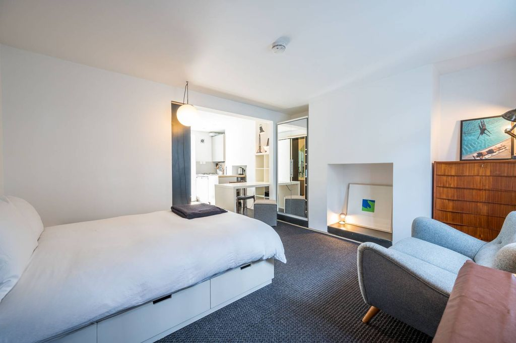 Студия предлагает нейтральный интерьер и современную отделку. В ней оптимально использовано пространство, что подчеркивается стильными деталями. Кухня обеспечивает доступ к прекрасному общественному саду, наполненному естественным светом.