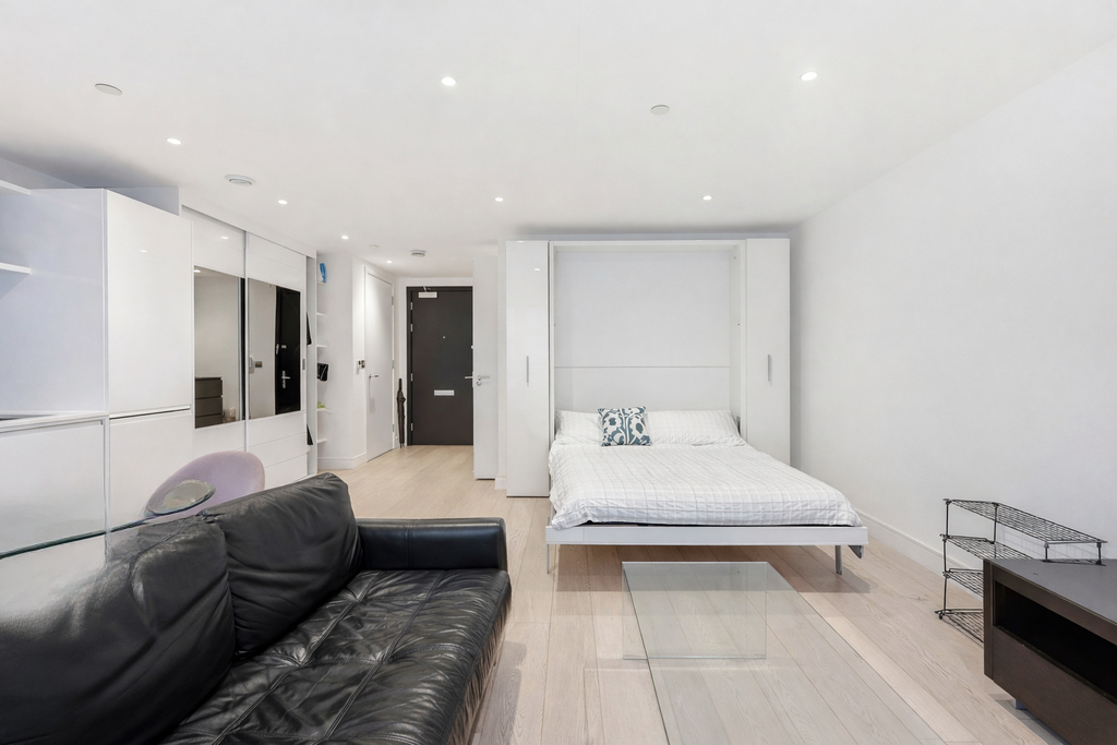 Стильная студия расположена на восьмом этаже современного и популярного комплекса, идеально расположенного на границе Шордича и Сити.