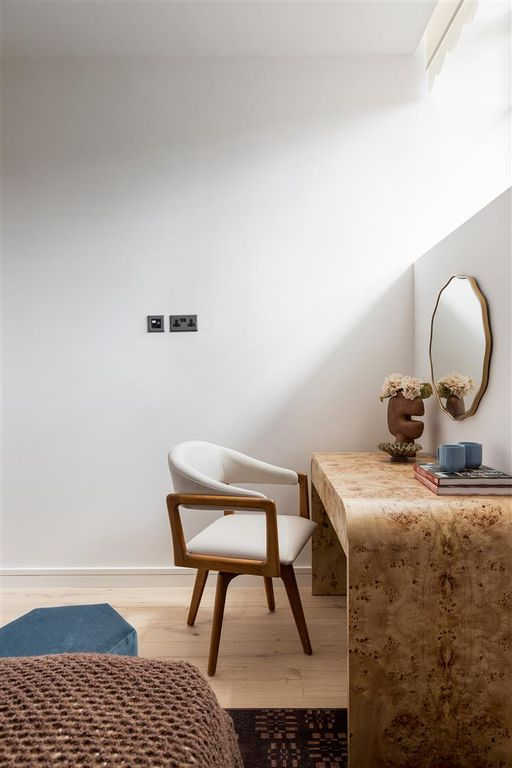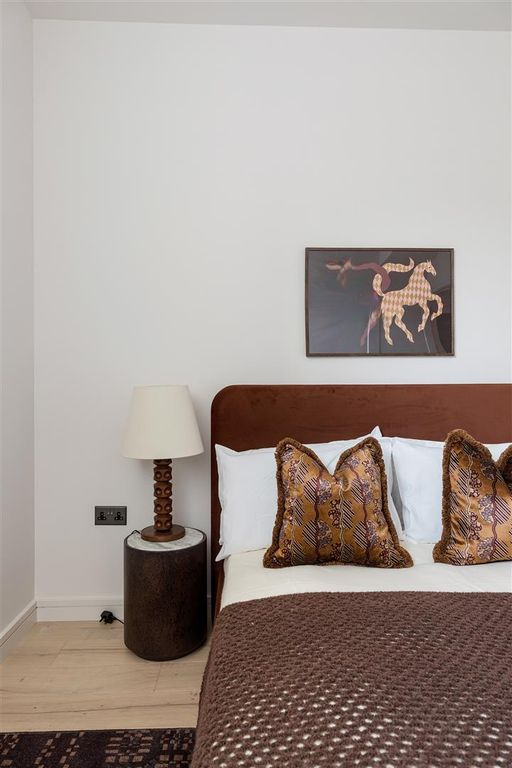 Спальня оформлена со вкусом, а ванная комната выглядит стильно и современно. В коридоре имеется встроенное хранение, и вся квартира спроектирована для современного комфорта, с панорамным остеклением, напольным отоплением, современной вентиляционной системой и энергоэффективными тепловыми насосами. Это настоящая находка жить в таком знаковом викторианском здании, но с современными удобствами внутри.