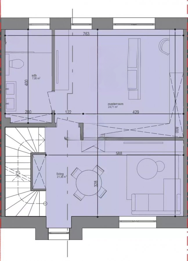 Общая площадь жилища составляет 130 м². На уровне подвала есть просторная кладовая площадью ±26 м², техническое помещение площадью ±15.7 м² и прачечная площадью ±4.55 м².