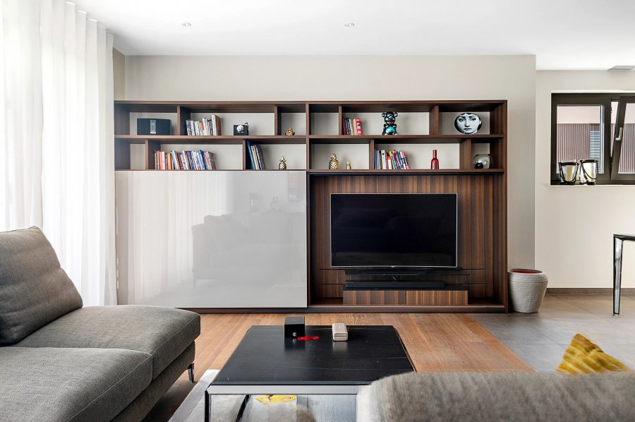На первом этаже находится просторный прихожий с изготовленной на заказ гардеробной Molteni. Кухня ARREX оборудована техникой Siemens и кварцевой столешницей. Из светлой гостиной площадью +-35m² открывается вид на южную террасу +-15m².