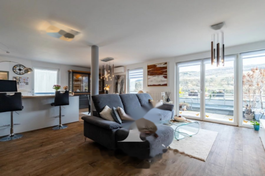 Откройте для себя современный светлый пентхаус, расположенный на верхнем этаже современной резиденции в Wasserbillig. Площадь 89 м², сочетающая элегантность и комфорт, с потрясающим панорамным видом на Мозель и окружающую природную красоту.