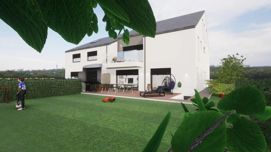 Второй этаж / Уровень сада: холл, отдельный туалет, кухня, совмещённая с гостиной и столовой, с выходом на террасу и в сад, встроенная квартира 38 м².