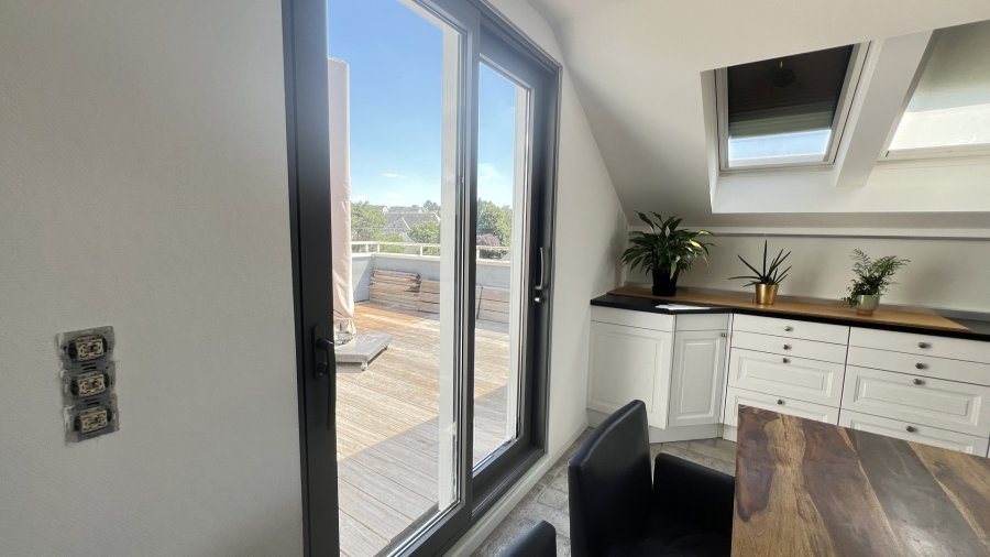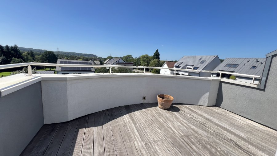 Этот красивый пентхаус с 3 спальнями, площадью 143 м² и террасами 56 м², находится в Санеме на 3-м и последнем этаже, в тихом тупиковом переулке. Он расположен в нескольких шагах от велодорожки и прогулочных зон среди полей и лесов, а также в нескольких минутах от торговых заведений.