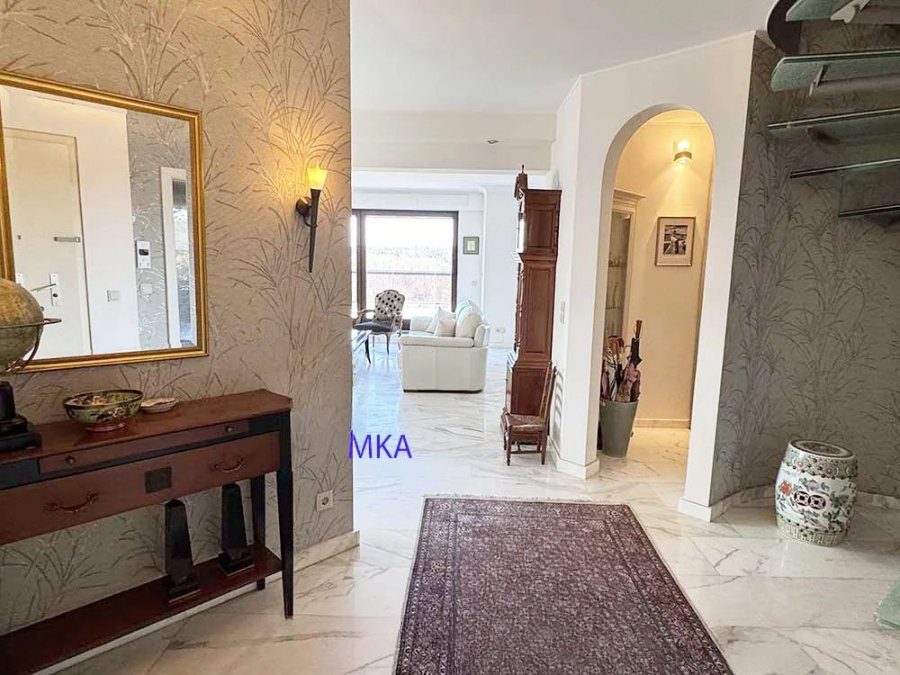 Находится на 7-8 этажах резиденции в отличном состоянии. На нижнем уровне (7-й этаж) располагаются: просторный холл с защитной дверью, гардеробной и туалетом с умывальником. Большая зона приема гостей с обеденной зоной, гостиной с этаноловым камином, библиотечным уголком и небольшим балконом. Крупные раздвижные окна ведут на великолепную террасу площадью 43 м² с зоной барбекю и кладовой. Прекрасная закрытая кухня с балконом.