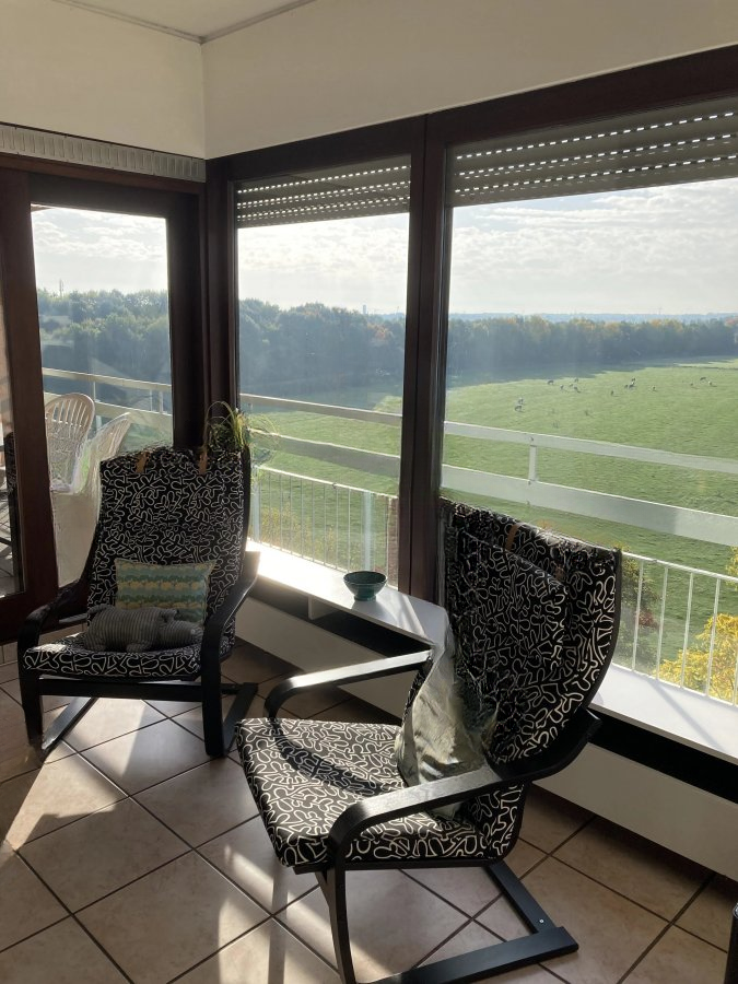Большой вход с встроенными шкафами, гостиная площадью +/- 38 м² с камином. Гостиная выходит на крытую террасу с юго-восточной ориентацией.
