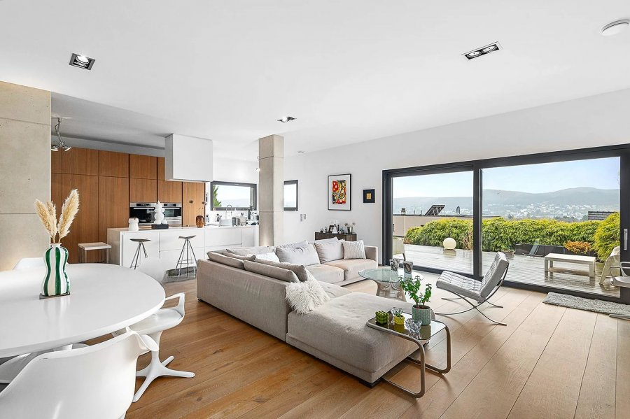 Этот дом впечатляет современным дизайном и предлагает теплую и уютную атмосферу с высокими потолками, материалами высокого качества и встроенной мебелью, а также множеством мест для хранения. Недвижимость расположена на возвышенности Хайсдорфа, в тупике, недалеко от красивых лесных прогулок и всех удобств, таких как школы, транспорт и супермаркеты.