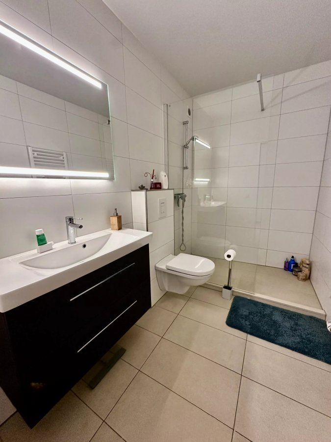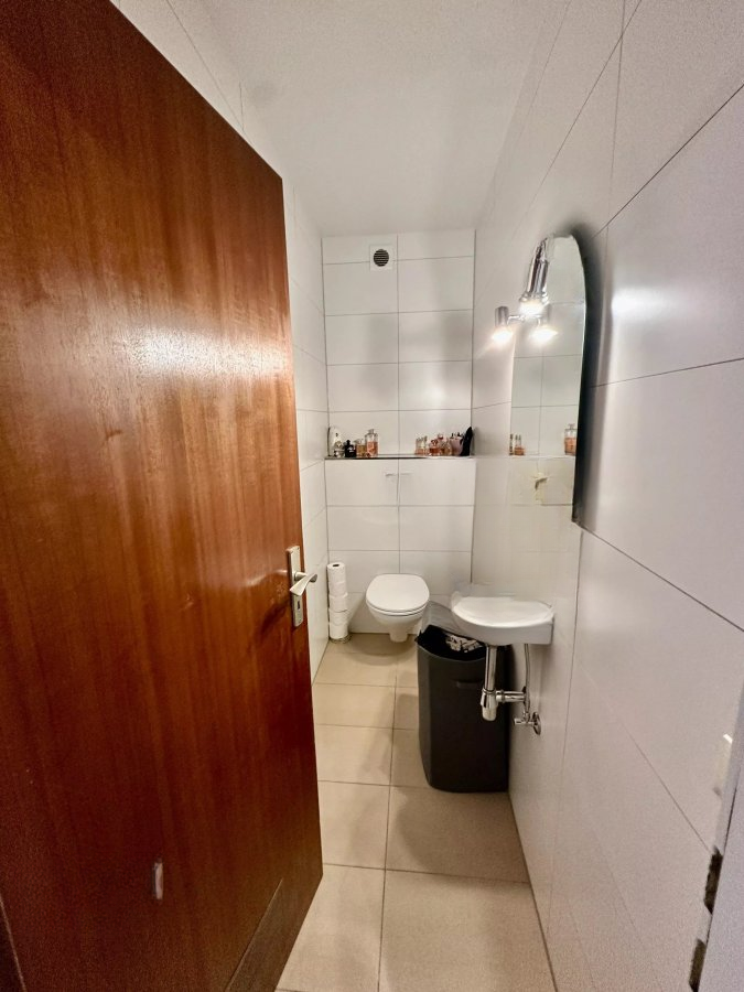 Приветственный холл с встроенным шкафом. Современная душевая комната и отдельный туалет. Просторная жилая и обеденная зона с выходом на балкон (+/- 5 м²) в задней части здания. Оборудованная кухня также с выходом на тот же балкон.