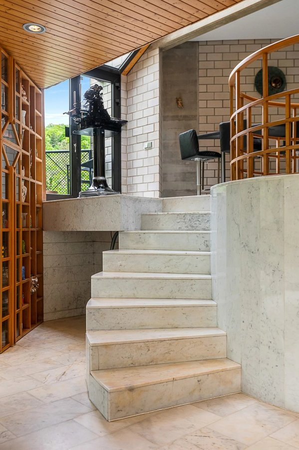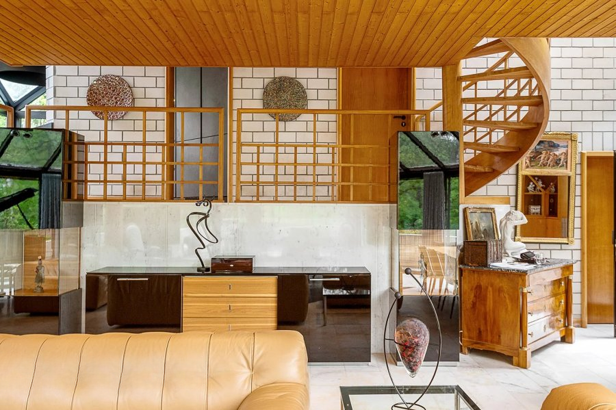 Студия архитектора 57 м², примыкающая к дому, и офис дуплекс 22 м² с гостевым санузлом имеют отдельный вход. Эти зоны предлагают большую гибкость в использовании: как независимая студия или для практики свободной профессии.
