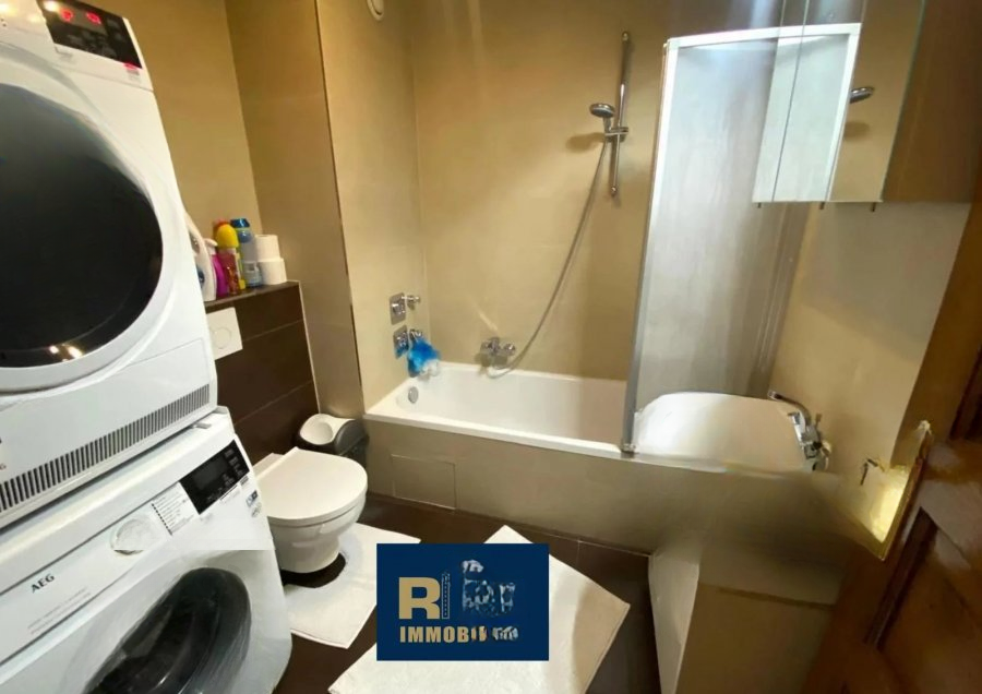 Апартамент включает в себя: входной холл, просторную гостиную площадью 43 м² с выходом на балкон, оборудованную кухню, две спальни (площадью 15,70 м² и 12 м²), ванную комнату, отдельный туалет, балкон, подвал и лифт. Под зданием имеется крытое парковочное место.