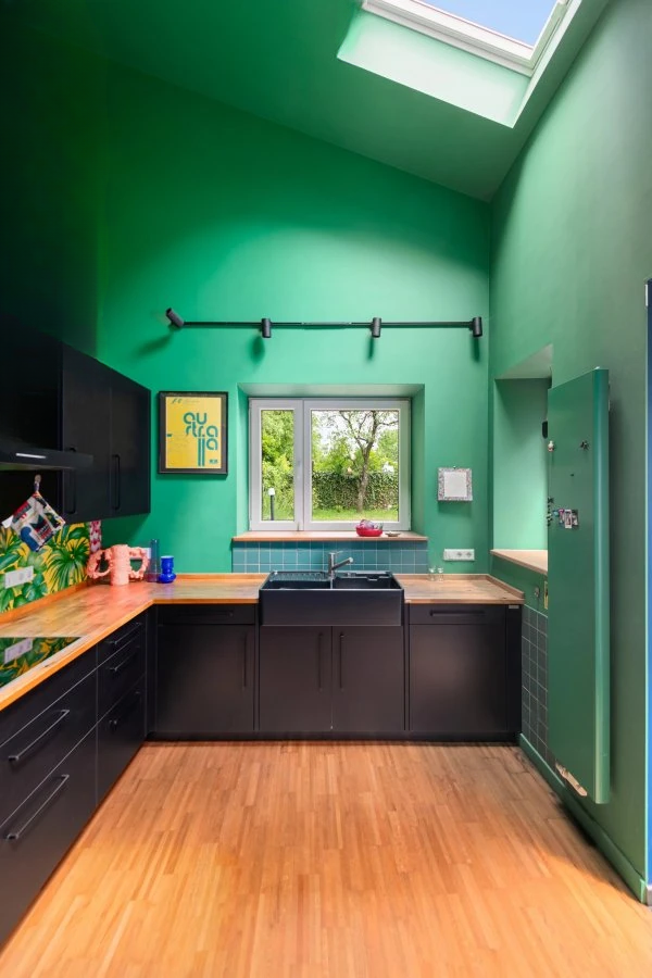 Дом обладает высоким объемом и расширенными крыльями, а залитая светом открытая кухня делает его настоящим архитектурным шедевром. Изысканный подбор цветов и материалов, вдохновленных путешествиями, создает атмосферу, сочетающую умиротворение и энергию.