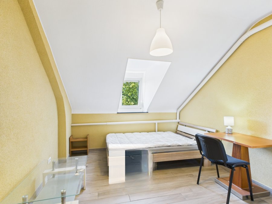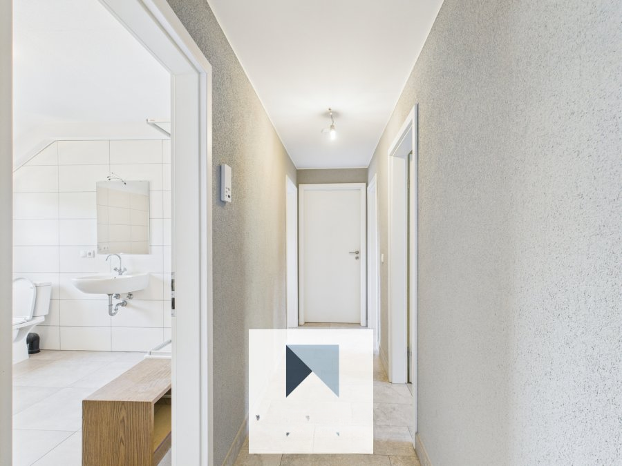 Эта однокомнатная квартира находится всего в нескольких шагах от железнодорожной станции Kleinbettingen и имеет площадь ± 56 м². На первом этаже доступна общая прачечная, место для хранения велосипедов и место для мусорных контейнеров. ️ На первом этаже расположено частное хранилище объемом ± 12 м². На втором этаже прихожая площадью ± 5 м² ведет в гостиную площадью ± 12 м² и просторную спальню площадью ± 16 м², душевую комнату площадью ± 9 м², кладовую ± 3 м², а также кухню/столовую площадью ± 9 м². Гостиную можно преобразовать во вторую спальню, что и реализовано в текущей планировке.