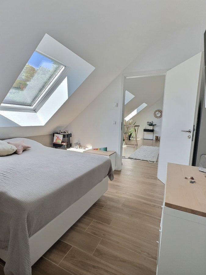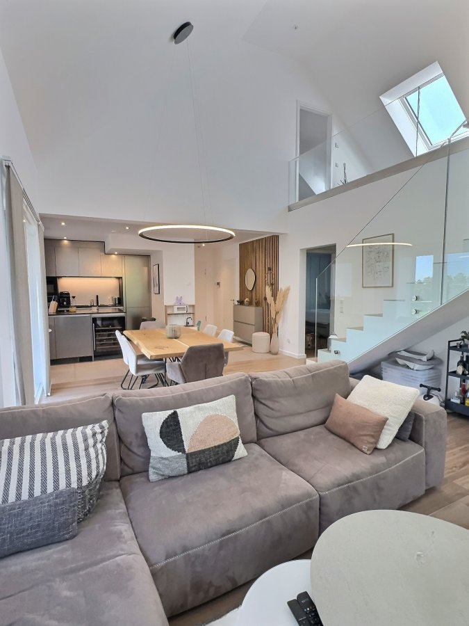 Предлагается на продажу великолепный дуплекс в Kreuzerbuch (Hobscheid) с площадью 129 м². Элегантная резиденция приветствует вас в своём просторном холле и ведёт в большую открытую зону в 48 м² с оборудованной кухней. Из этой комнаты можно пройти на балкон площадью 5.5 м² и в отдельный туалет. Ночной коридор ведёт в дополнительные помещения, такие как ванная комната с душем и две спальни размером 14.82 м² и 14.26 м² соответственно.