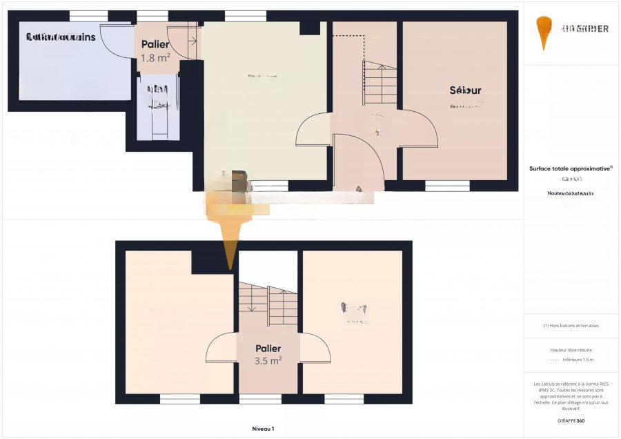 surface: 63 m², rooms: 2, bathrooms: 1;