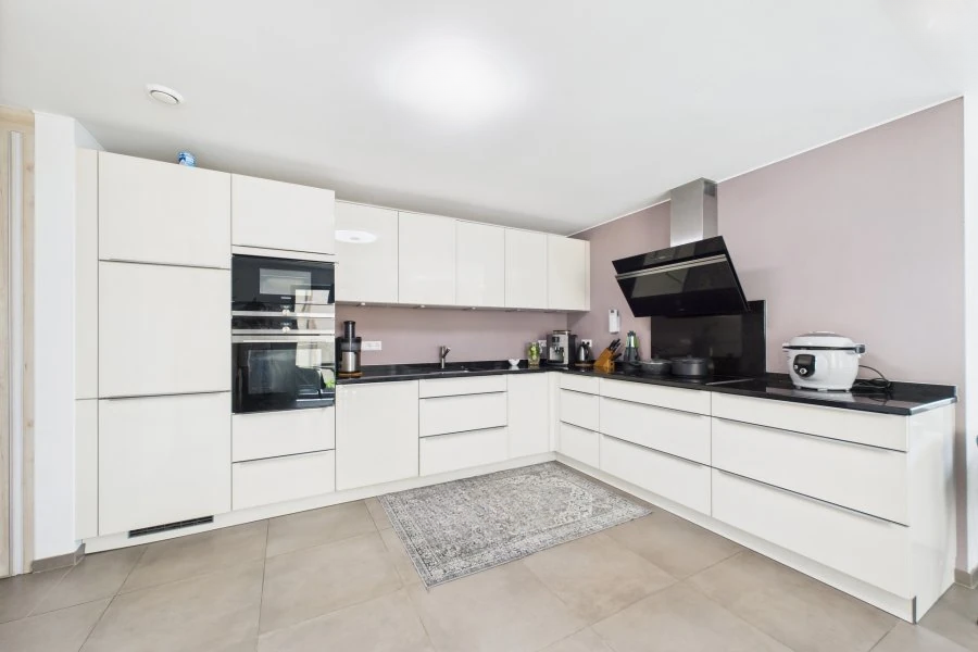Удобства: высота потолков 2,58 м, видеодомофон, система вентиляции с рекуперацией, тройное остекление, электрические жалюзи, полы из полумассивной древесины в спальнях, шкафы на заказ.
