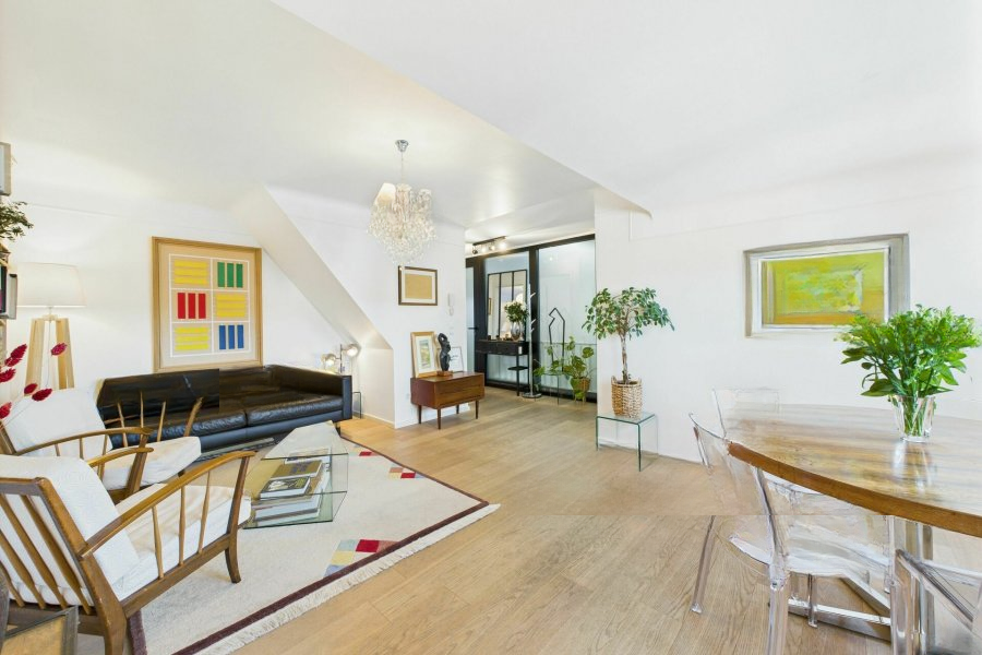 Стильный и со вкусом отремонтированный пентхаус находится в районе Белэр. Планировка включает прихожую, гостиную/столовую, полностью оборудованную кухню площадью 36 м², душевую комнату с туалетом 3,6 м². Две спальни размером 14,8 м² и 18,2 м². На чердаке расположена родительская спальня со встроенной мебелью, отдельно стоящей ванной и раковиной (33 м²). Включена одна личная кладовая площадью 3 м².