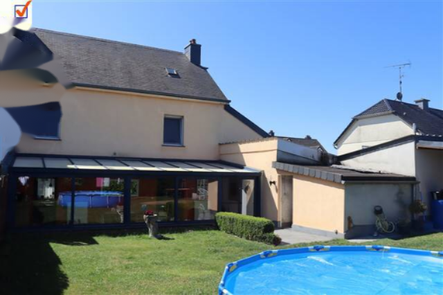 Дом продаётся в Бигонвиле (коммуна Рамбрух), по адресу 14 rue des Champs. Очень просторный дом (общая площадь 417 м², из которых 242 м² жилые) включает 5 спален и гостиную с верандой, общей площадью 47 м². Есть полностью оборудованная кухня и гараж на 2 машины, с большой дворовой площадью 73,5 м² (возможность дополнительных гаражей). С задней стороны расположен сад и крытая терраса с барбекю.