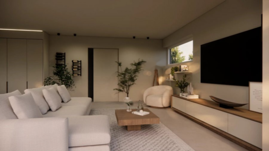 Современный отдельно стоящий дом (лот 4) в стадии будущего строительства (NZEB – Дом с почти нулевым потреблением энергии), расположенный на участке 3.43 ара в тихом жилом районе в Гарниш.