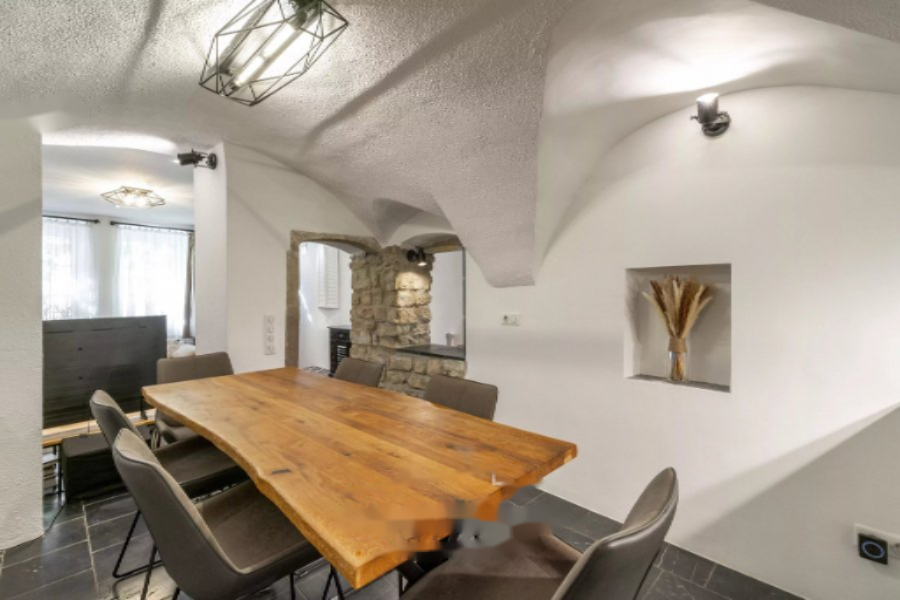 Историческое очарование встречает современные удобства в Ремише. Этот дом, отремонтированный в 2020 году, укрытый в тихом тупике на одной из самых живописных улиц города, настоящая редкость. Каменный фасад, открытые балки и сводчатые жилые пространства создают ощущение тепла и подлинности.