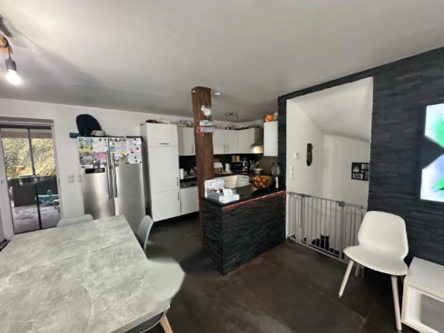 Жилая площадь около 95 м², расположенная на трех этажах, включает в себя 2 спальни, гараж и 2 парковочных места внутри и 2 снаружи. Сад около 100 м² и просторная терраса около 25 м² дополняют открытая кухня и газовое центральное отопление. Светлый и приятный дом.