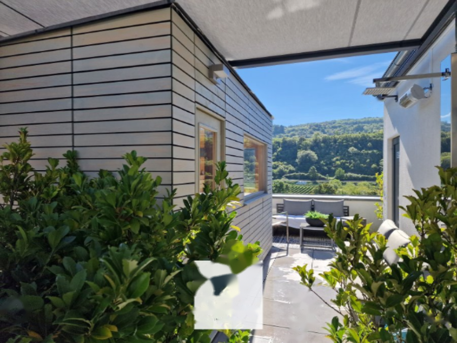 Основной акцент дома — крыша, занимающая всю площадь крыши, оборудованная зоной отдыха, душем и электрическим навесом. Отсюда открываются возвышенные панорамные виды на Мозель, гарантируя полную приватность.