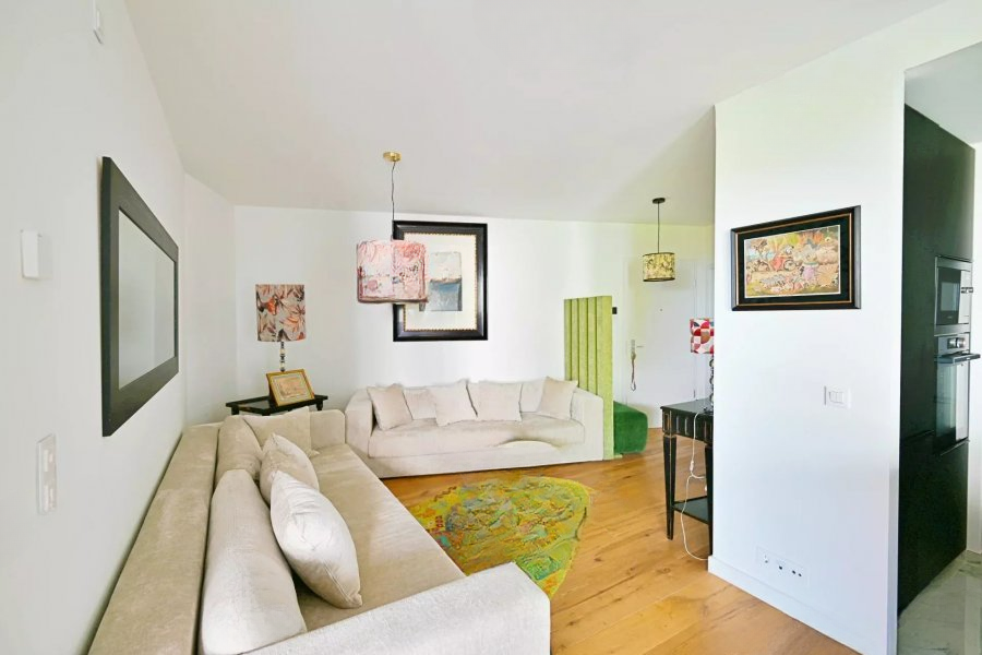 В пространстве апартамента вы найдете: прихожую, гостиную, кухню с островом, крытую террасу, открытый офис, ночной холл, душевую комнату и спальню с гардеробной. Техническое оборудование включает в себя тройные стеклопакеты с электрическими жалюзи и ставнями, а также напольное отопление газом.