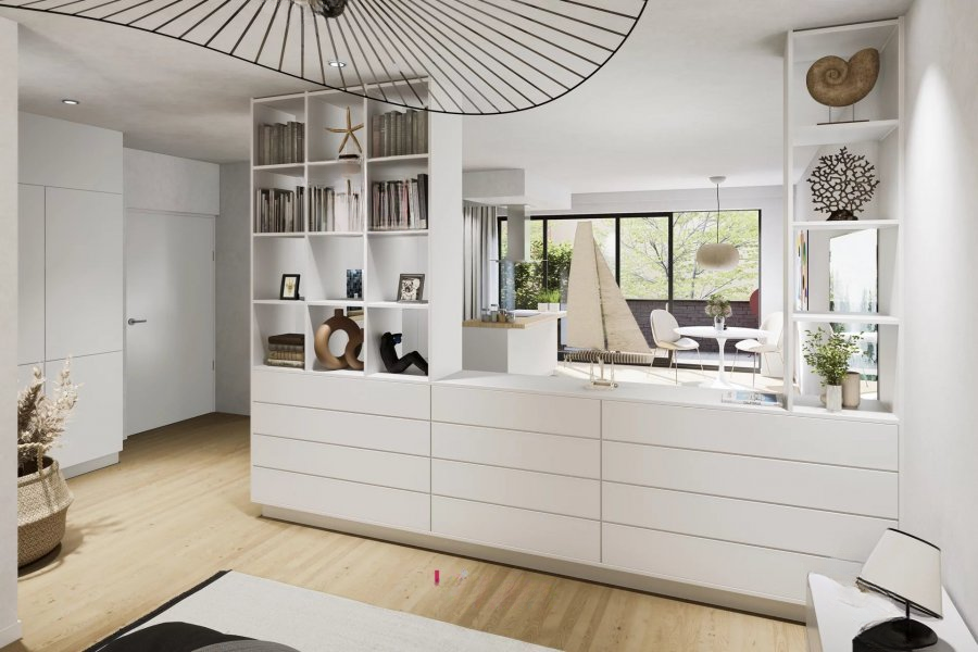Эти апартаменты (лот 7) расположены на 2-м этаже с частным садом. Жилая площадь включает гостиную 37 м², ванную комнату с душем типа "walk-in", прачечную 6.4 м² с подключением для стиральной машины и сушилки, WC, спальни площадью 12 м² и 20 м². Общее жилое пространство составляет 100 м², имеется 11 м² балкон-лоджия. Включены два частных парковочных места внутри резиденции и кладовая.