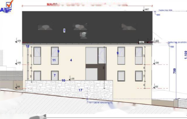 К продаже в Перле (община Рамбруш), на улице гранд-рю 17, дуплексная квартира 1.2 общей площадью 69,09 м². На первом этаже: гостиная с открытой кухней, кладовая, туалет, балкон; на втором этаже: спальня, душевая комната и мезонин.