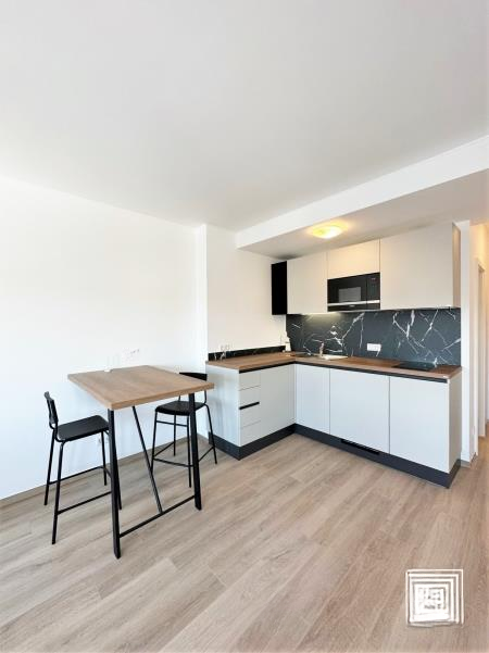 Студия, полностью отремонтированная, площадью примерно 29 м², находится в районе вокзала и предлагает прекрасный вид. Включает прихожую, гостиную, кухонный уголок и ванную комнату с душем.