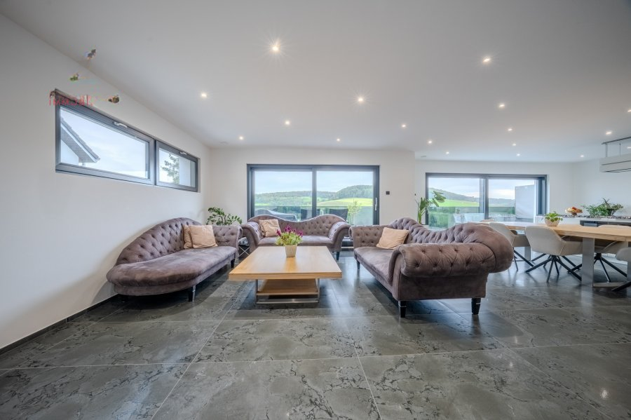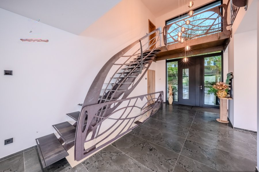 Оснащение и технические особенности: энергоэффективность класса A/B, теплый пол с использованием теплового насоса, тройные стеклопакеты из ПВХ Schüco, вентиляционная система с двойным потоком, охранная система с датчиками движения и датчиками на дверях и окнах, система домашней автоматизации KNX, предустановка для центральной вакуумной системы, оптоволоконное соединение, лестница из высококачественной стали с современным дизайном, качество покрытия плиткой во всем доме.