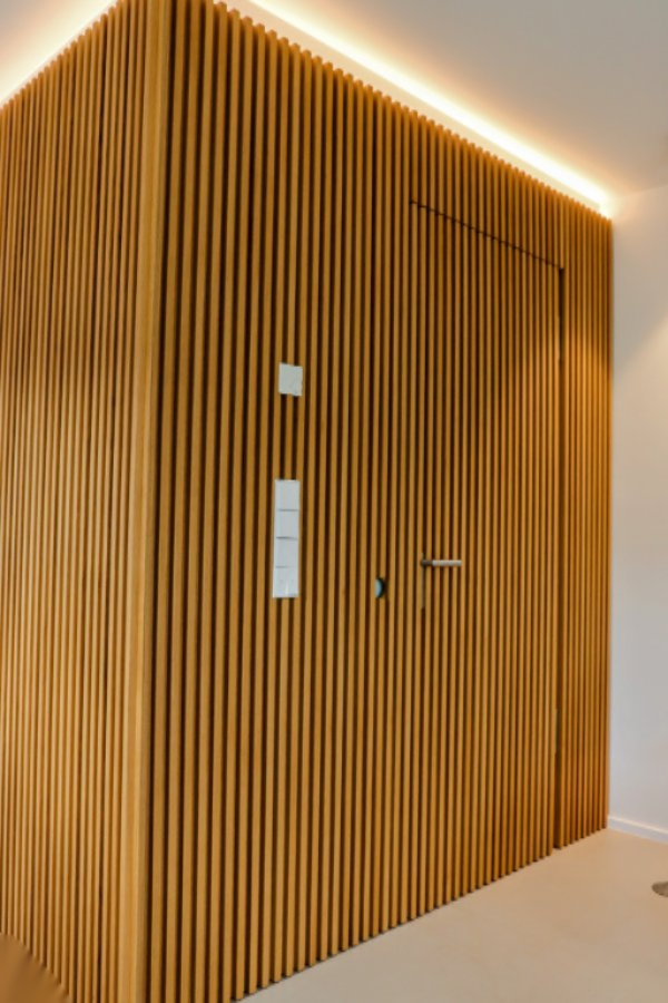 На втором этаже находится отличное открытое пространство площадью 52.21 м², включающее светлую гостиную, уютную столовую зону и высококлассную открытую кухню с тиковыми столешницами и натуральным камнем. Две террасы обеспечивают великолепное место для отдыха: передняя площадью 4.62 м² и задняя площадью 13.49 м², ориентированная на юг.