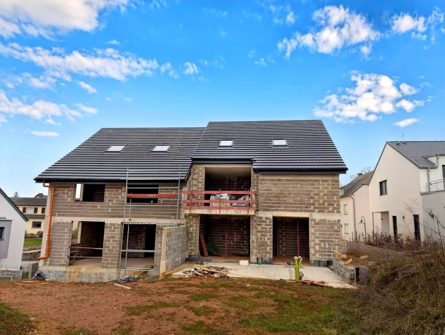 Новый двухквартирный дом с жилой площадью 38 м², расположенный в тихом месте на участке 4.77 ares с неограниченным видом на поля.