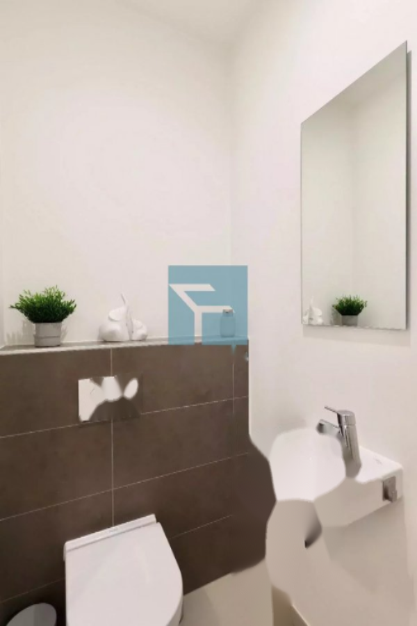 Первый этаж включает в себя просторный холл (15 м²), две прекрасно оборудованные спальни (11 м² и 16 м²), современную ванную комнату с туалетом (6 м²).