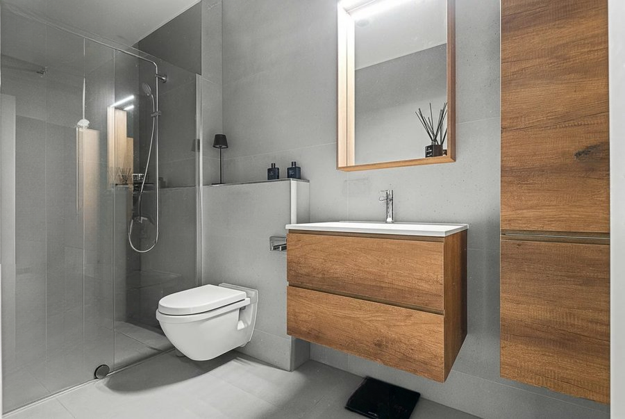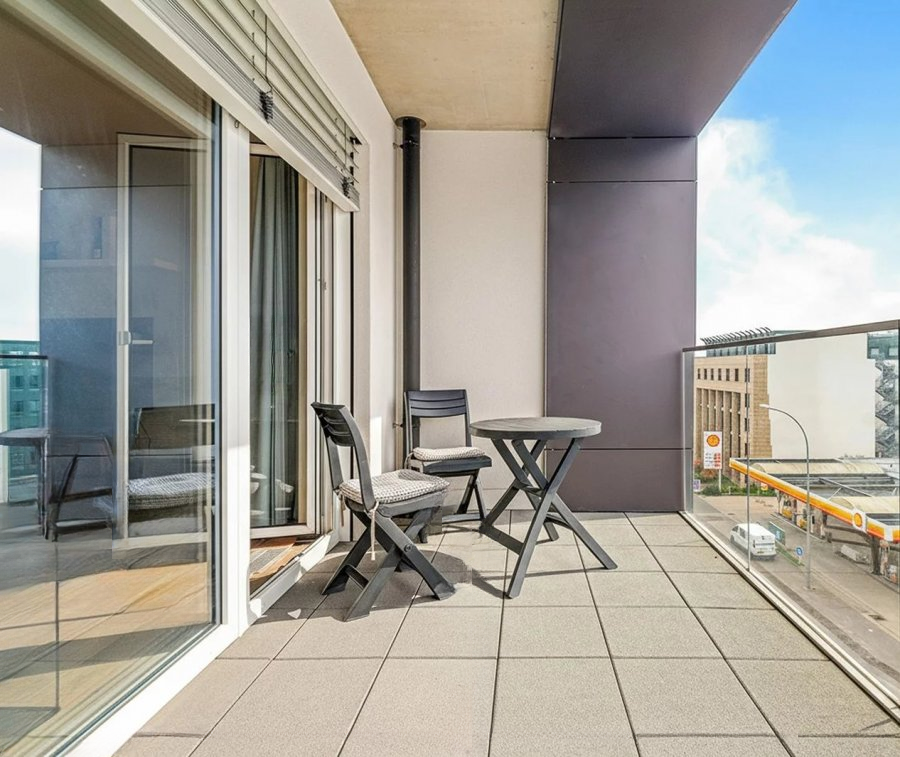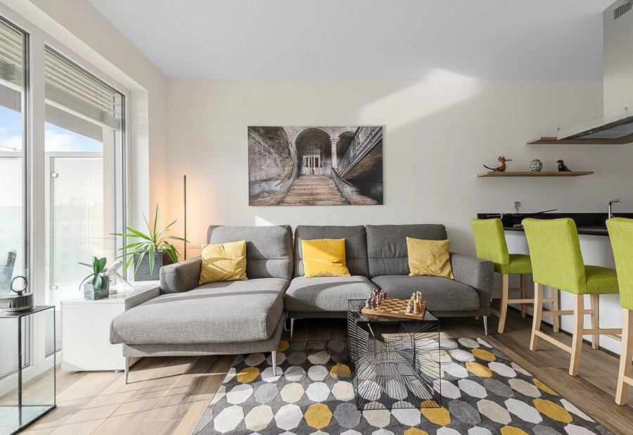 Апартаменты на 4 этаже, с жилой площадью около 55 м², включают в себя: входной холл площадью ± 5 м², светлую гостиную площадью ± 30 м² с открытой, оснащенной кухней, ведущей на балкон площадью ± 10 м², спальню площадью ± 14 м², а также отдельную душевую комнату площадью ± 5 м² с душем, умывальником, туалетом и электрическим полотенцесушителем.