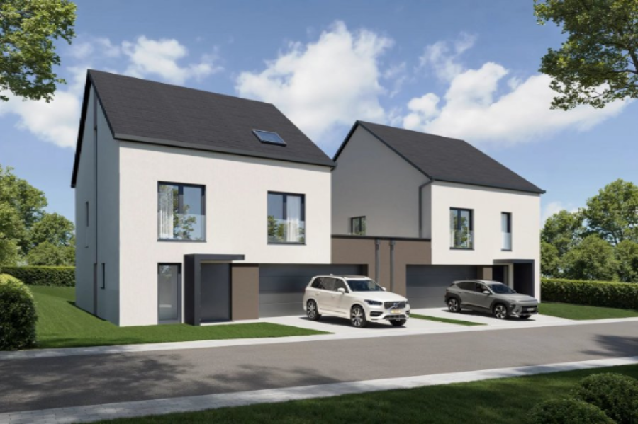 Дом на одну семью, часть спаренного дома (левая сторона), будущей постройки NZEB, расположенный на участке 3.95 ares в деревне Calmus, коммуна Saeul.