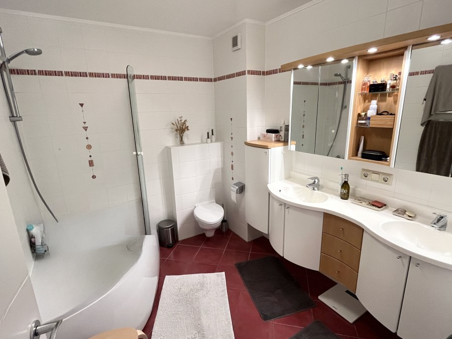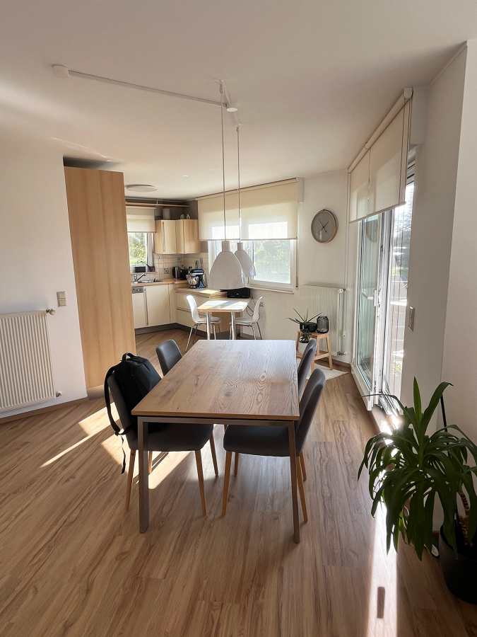 Квартира на продажу в Junglinster, расположенная на тихой улице. Площадь составляет 83 м². Яркая гостиная включает полностью оборудованную кухню, обеденную зону и гостиную с выходом на балкон, ориентированный на юго-запад.