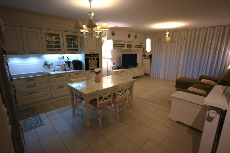 Здание находится в хорошем состоянии, оснащено лифтом и системой видеодомофона. Внутренние полы преимущественно выложены плиткой, тогда как в спальнях уложен паркет. В квартире есть газовый конденсационный котел. Также в распоряжении жильцов кладовая в подвале и внутреннее парковочное место.