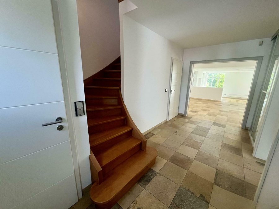 В подвале широкие подвалы, котельная и спортивно-хаммамно-джакузи зона с душевой и туалетом (+/-100 м²) и выход в сад.