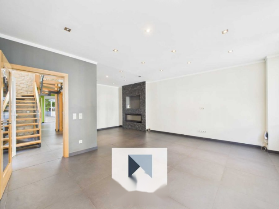 На первом этаже: прихожая площадью ± 8 м² с выходом в гостиную/столовую площадью ± 29 м² с электрическим камином. С другой стороны находится санузел с душем и туалетом, а также полностью оборудованная кухня площадью ± 19 м² с центральным островом, ведущая на большую полуоткрытую террасу площадью ± 50 м² с печью для пиццы/барбекю.