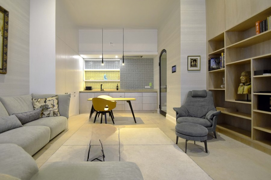 Вся квартира была разработана при участии дизайнера интерьеров. Для оформления и проектирования встроенной мебели использовались качественные, сдержанные, теплые и элегантные материалы и отделочные элементы.