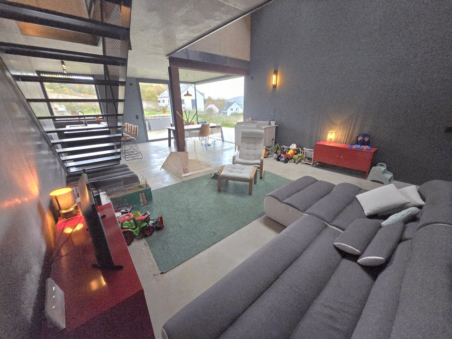 Тепловой насос, полы с подогревом, тройное остекление и класс энергоэффективности B обеспечивают устойчивый комфорт. Дом располагает двойным гаражом и 2 местами для парковки на улице, предлагая высочайшие стандарты жизни, где архитектура, природа и качество жизни прекрасно гармонируют.